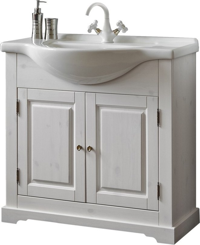 Kommod med tvättställ i porslin är en massiv välarbetad pjäs med fint skurna golvlister. Det massiva trämaterialet är slitstarkt och sväller inte upp direkt vid kontakt med vatten. Dessutom är det mycket hållbart och därav bra för vår miljö!