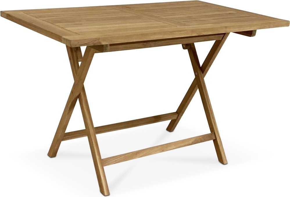 Saltö matgrupp för uteplatsen med ett rektangulärt vikbart matbord i massiv teak, tillsammans med Saltö matstol i massiv teak. En klassisk kombination.