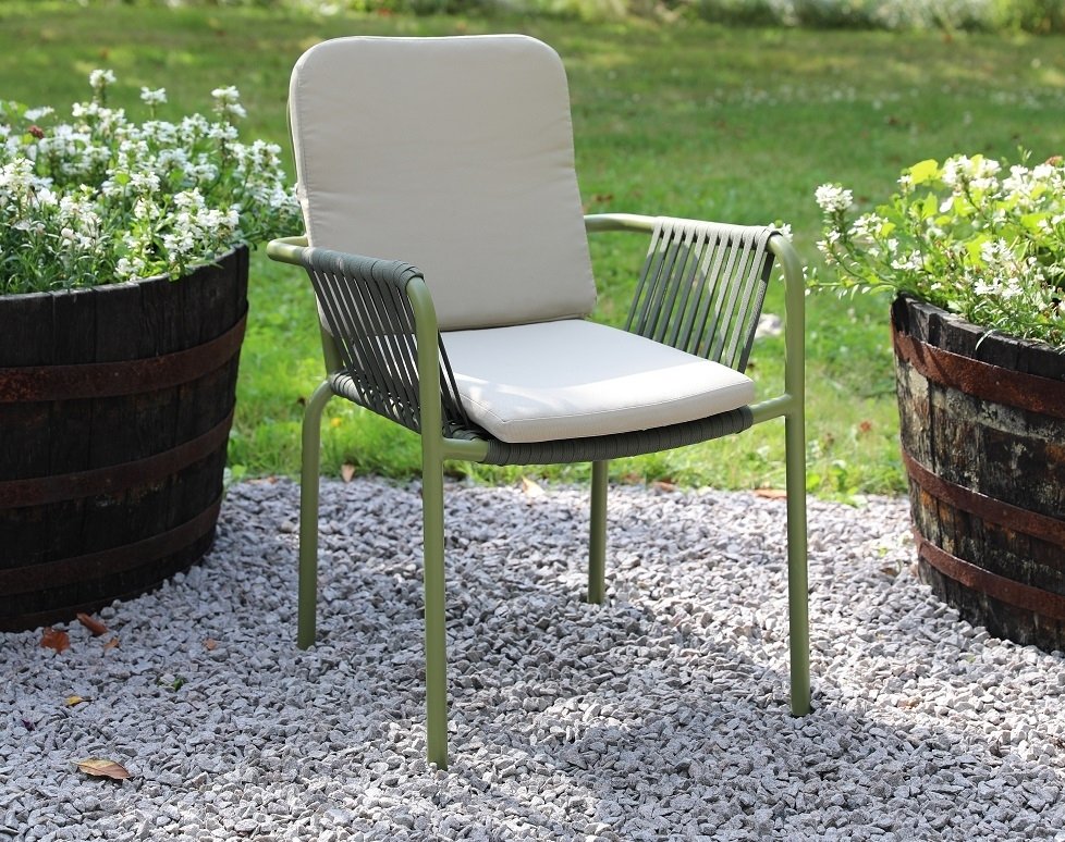 De trädgårdsstolar som medföljer i denna utemöbelgrupp är Lincoln och är gjorda i aluminium medföljer gör även beiga dynor för extra komfort. Stolen Lincoln är stapelbara och kan enkelt ställas undan vid behov. I den här utemöbelgruppen medföljer 6 stycken stolar.